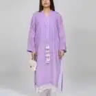 2 Piece Mulmul Kurtas with shadow chickankari and tarkashi work all over front and back with sleeves. Perfect for scorching summer days. Feel the breeze. Tassels are hand made with pintucks front neckline. Chantily Lace at the bottom giving the luxurious feel.