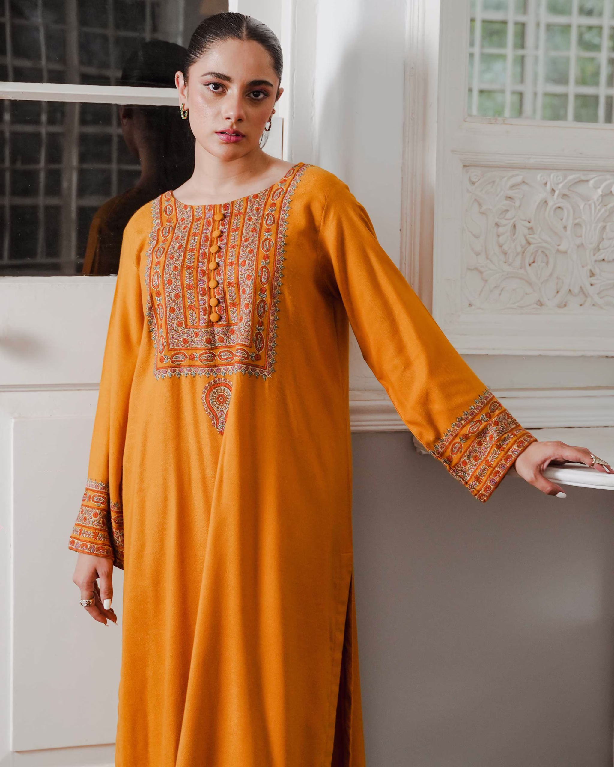 Indulge winters in rich Kashmiri intricate needle hand- embroidery with gorgeous patterns on specially weaved suede fabric.