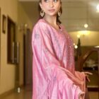 - Shirt & Dupatta: Crafted from soft paper cotton, with scalloped edges on the shirt and kiran detailing along the dupatta for a classic golden shimmer.