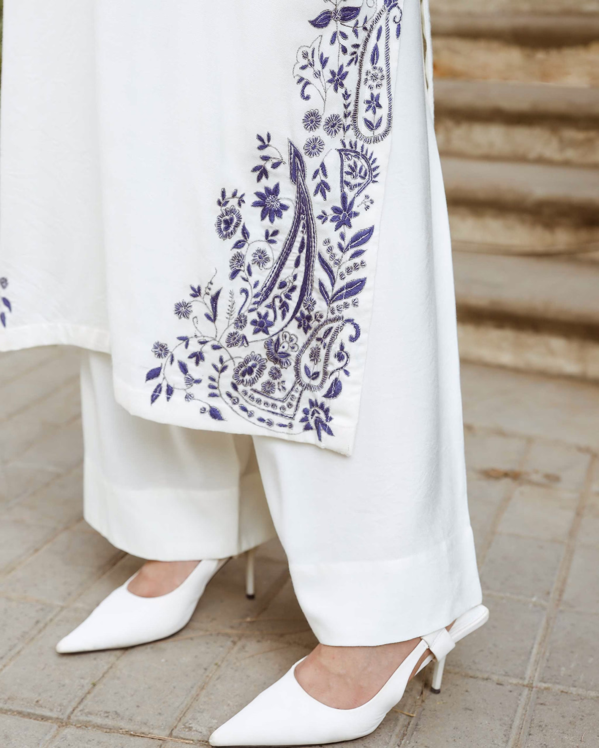 Indulge winters in rich Kashmiri intricate needle hand- embroidery with gorgeous patterns on specially weaved suede fabric.